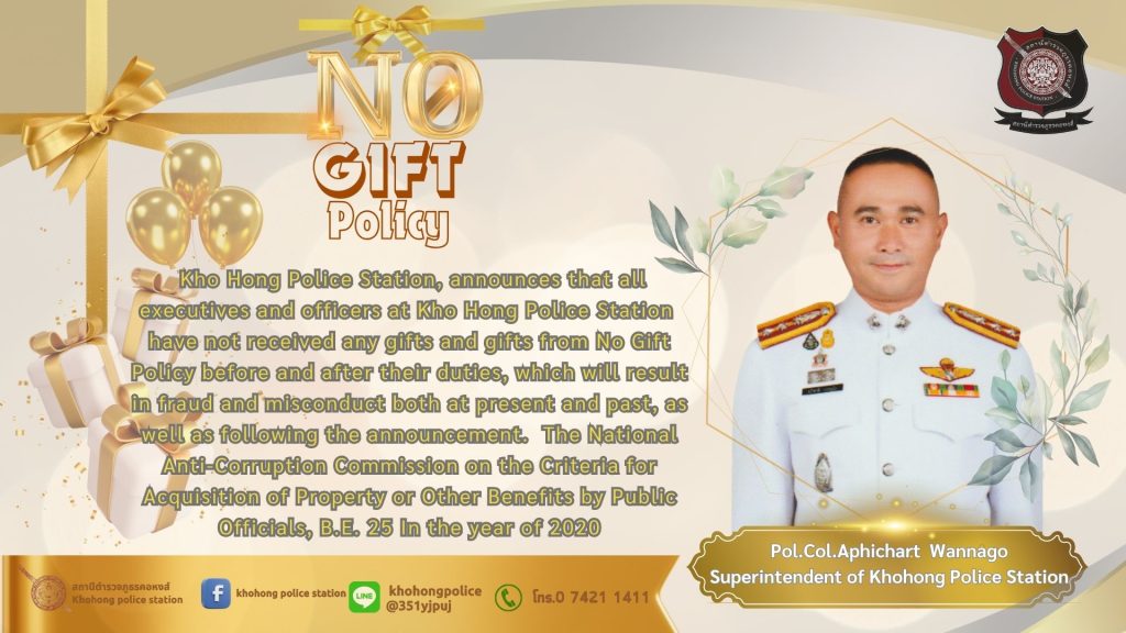 นโยบายต่อต้านการรับสินบนและการไม่รับของขวัญของกำนัลหรือประโยชน์อื่นใด จากการปฏิบัติหน้าที่