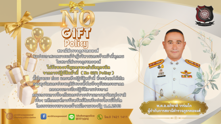 ประกาศเจตนารมณ์ที่จะไม่รับของขวัญและของกำนัลทุกชนิดจากการปฏิบัติหน้าที่ (ภาษาไทย)